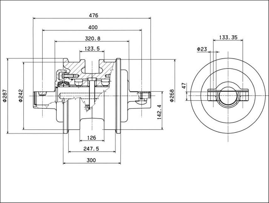 支重輪的主要結構:輪體、支重輪軸、軸套、密封圈、端蓋等相關部件構成。支重輪可分為單邊支重輪與雙邊支重輪;挖掘機用支重輪與推土機用支重輪,挖掘機用支重輪一般是黑色油漆,推土機支重輪一般是黃色油漆。